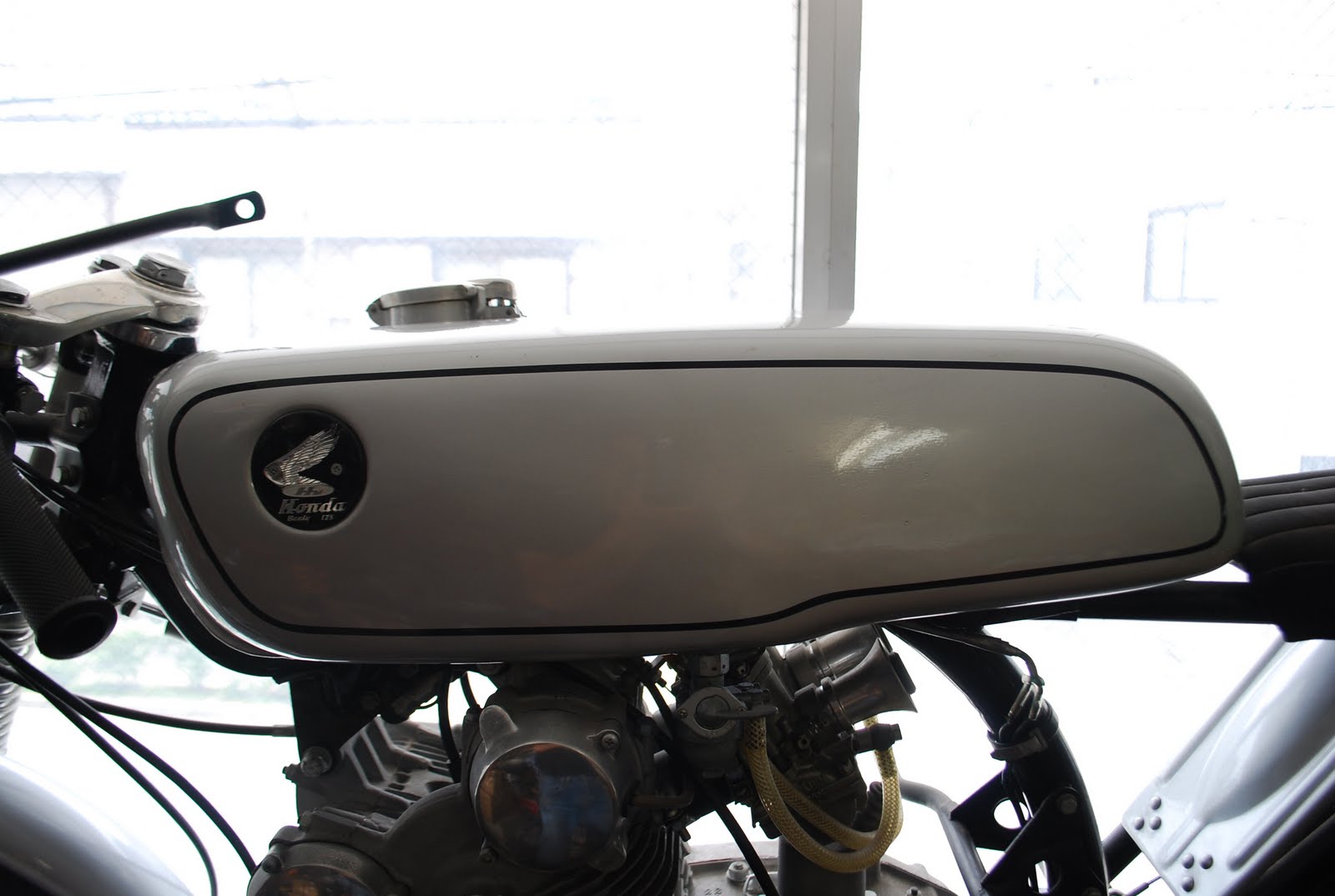 続CRラビリンス。フエルタンク編 リンクを取得 Facebook × Pinterest メール 他のアプリ 6月 25, 2011 部品出のストリート用スチールタンク。ライン部のプレスでの凹みは無いがラインは入って入る。マウス部はスチール、キャツプ部はアルミ製。恐らくマン島を走ったで有ろう車両に取り付けて有った、アルミレーシングタンク。何回かの転倒でパテ修理がほどこされている様で可也重い。又ペイントもラインもCRの繊細差に欠ける。難度の高いレストアが要求される。部品出のアルミタンク。此の手は最初からラインが入らず、全体のプレス型も少しでこぼこしている。細かな部分にハンドワークが見られる。恐らく当時のプレスではなく新たに型を製作し、微妙な部分を手仕事で仕上げた物と思われる。新たな視点で見れば、此の手のタンクも労作で20年前に部品をメーカーが少数製作した事が現在では信じられない事だ。CR93レーシングに取り付くアルミタンクです。市販のレーシングバージョンは全て最初からアルミタンクがセットされた。 リンクを取得 Facebook × Pinterest メール 他のアプリ コメント